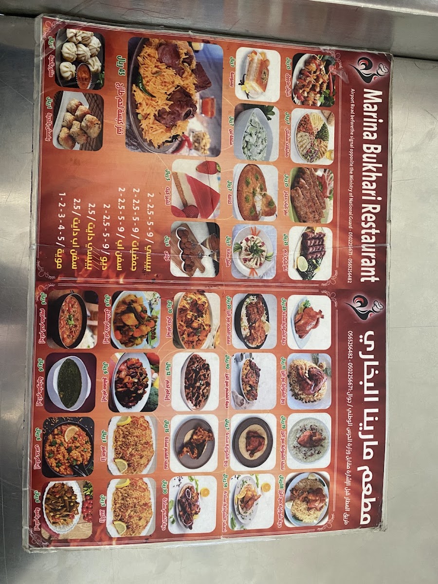 The menu at Marina Bukhari Restaurant offers a comforting and straightforward selection of dishes inspired by traditional flavors, making it a great choice for casual meals throughout the day. Guests can enjoy hearty options like various grilled and fried chicken dishes, including دجاج الفحم and دجاج مقلي, alongside flavorful rice plates such as كبسة لحم and the signature دجاج وأرز بخاري.